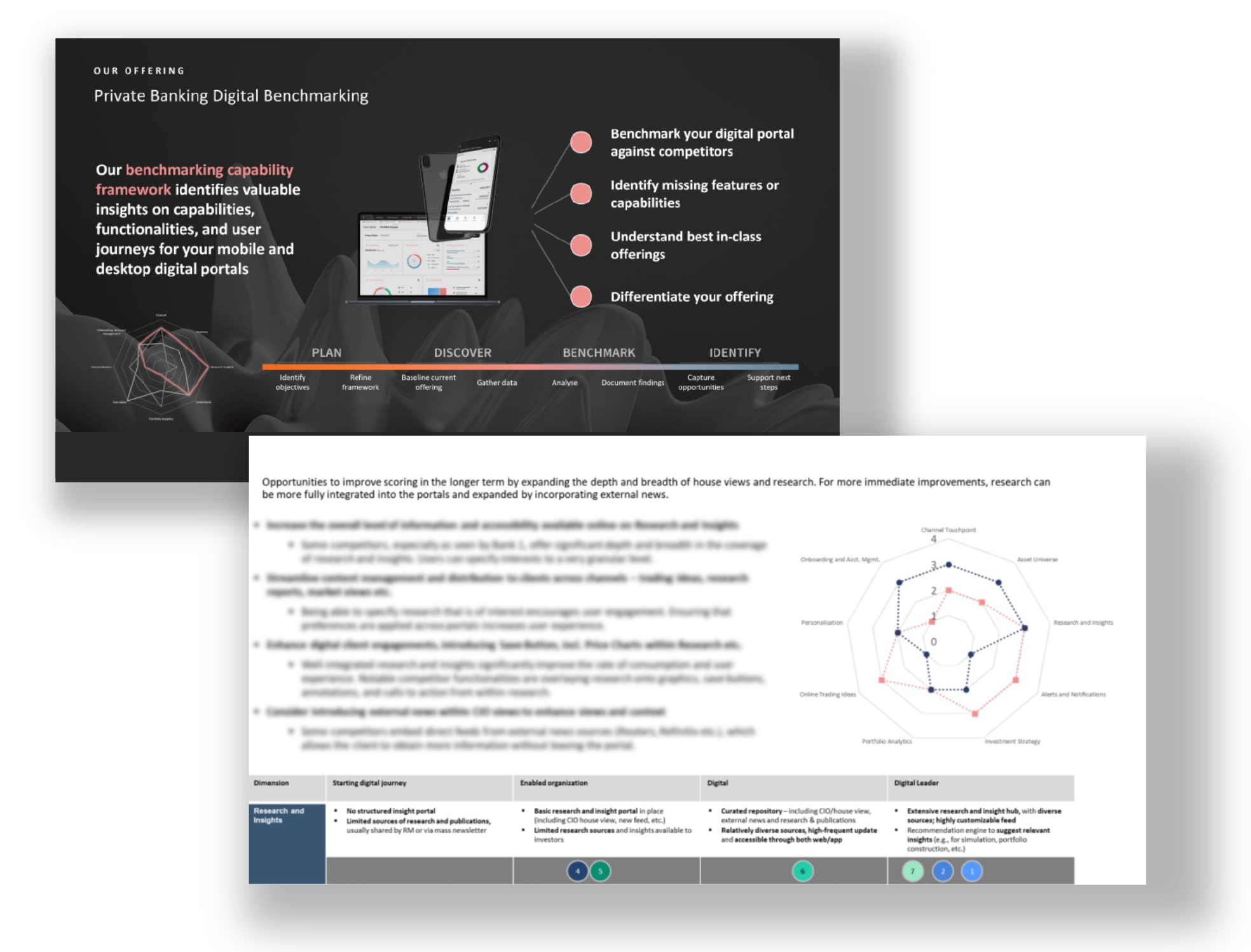 In a two hours workshop, we decided top focus on the benchmarking framework from key dimensions in the private bank industry.