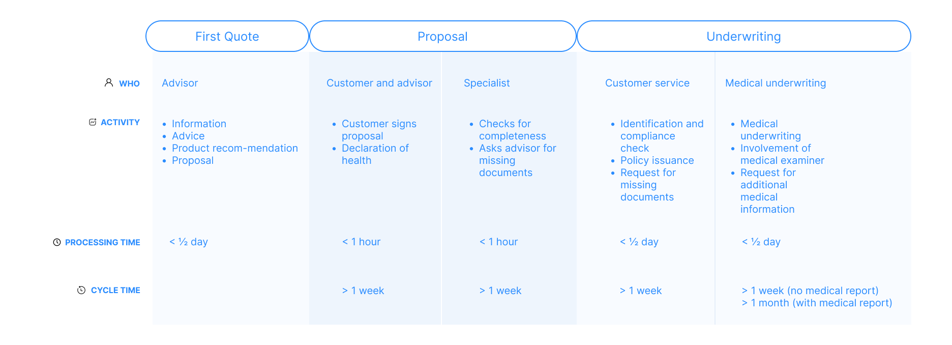 Long cycle times are one major problem in individual life. The sales process can take up to several weeks.