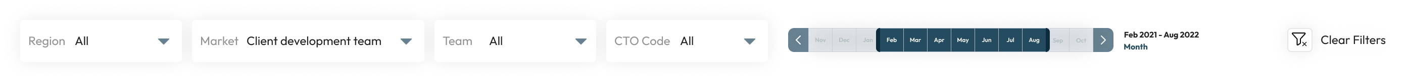 The users can conduct a search using contextual filters that narrow the search results. The search results for a query are very numerous and reviewing them would be very time-consuming. When the filters applied, the followings charts changed to show trend and insights.