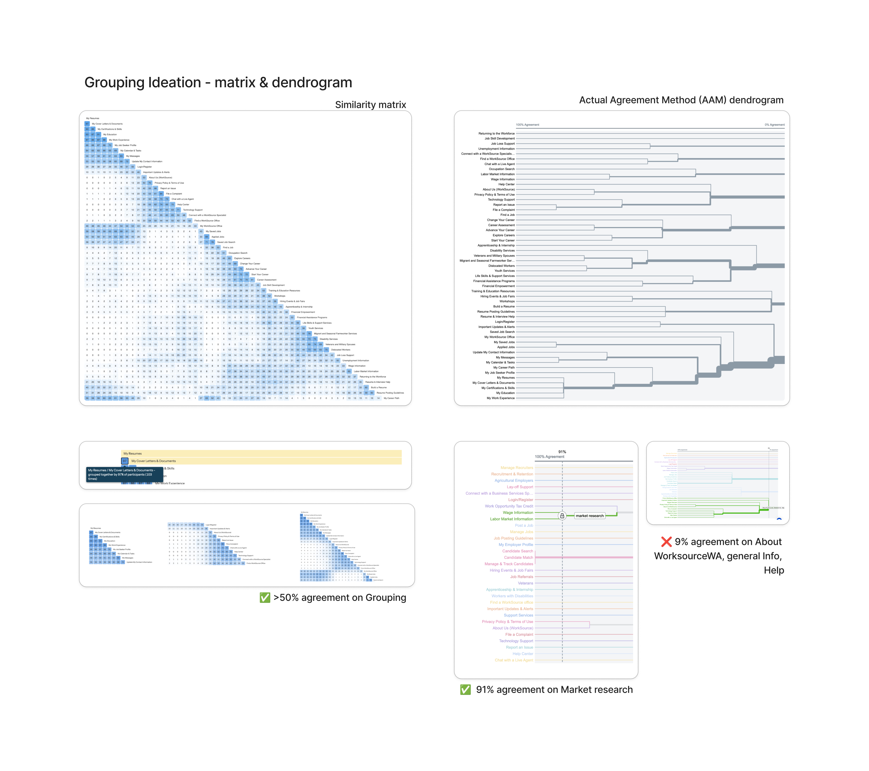 - Leadership Highlight: Led the analysis of card sort and tree test data, extracting key user insights that informed IA decisions and aligned navigation structure with user expectations, accessibility standards, and state policy requirements.