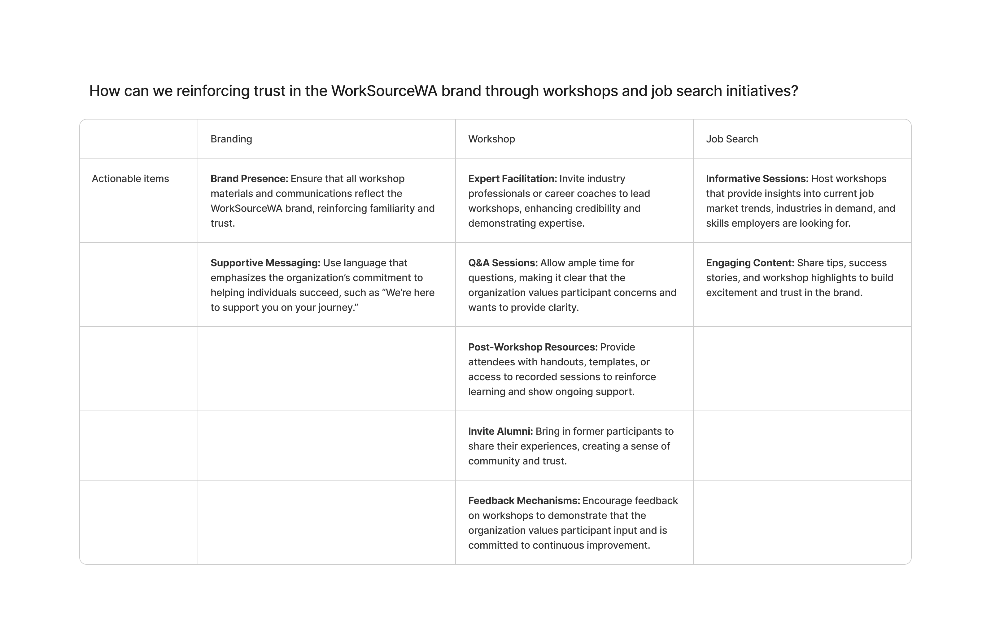 3. Key Themes and Topics - To build a successful content strategy for WorkSourceWA job seekers must balance addressing urgent needs—like resume help and job listings—with long-term support around career growth, training, and stability.