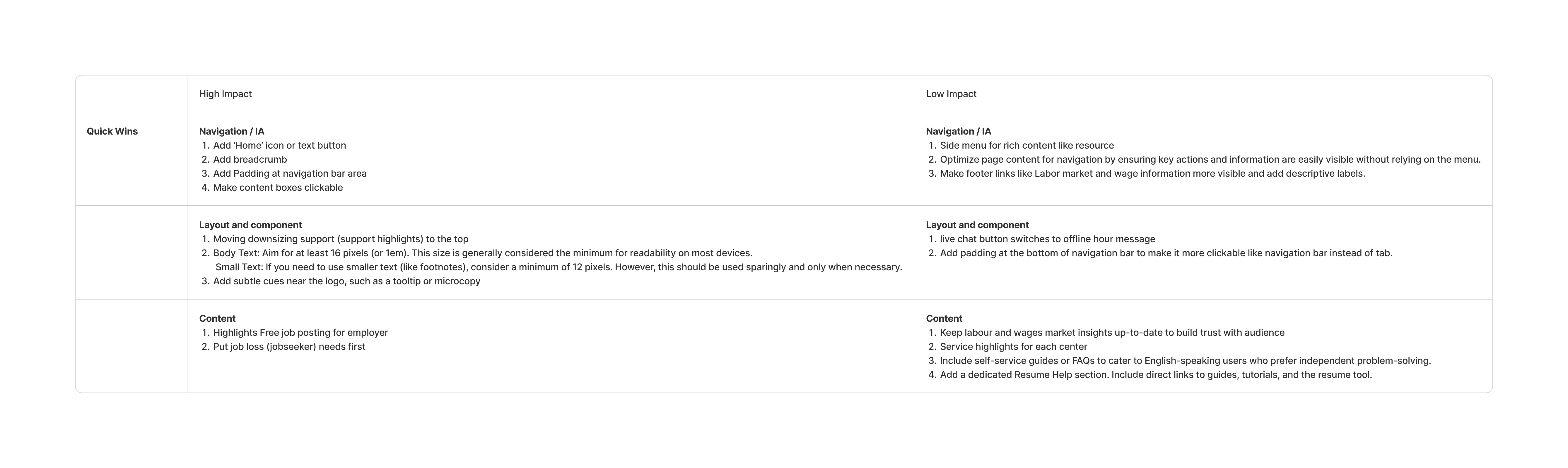 - Competitive Analysis – benchmarked digital platforms offering employment services to uncover UX and content opportunities.