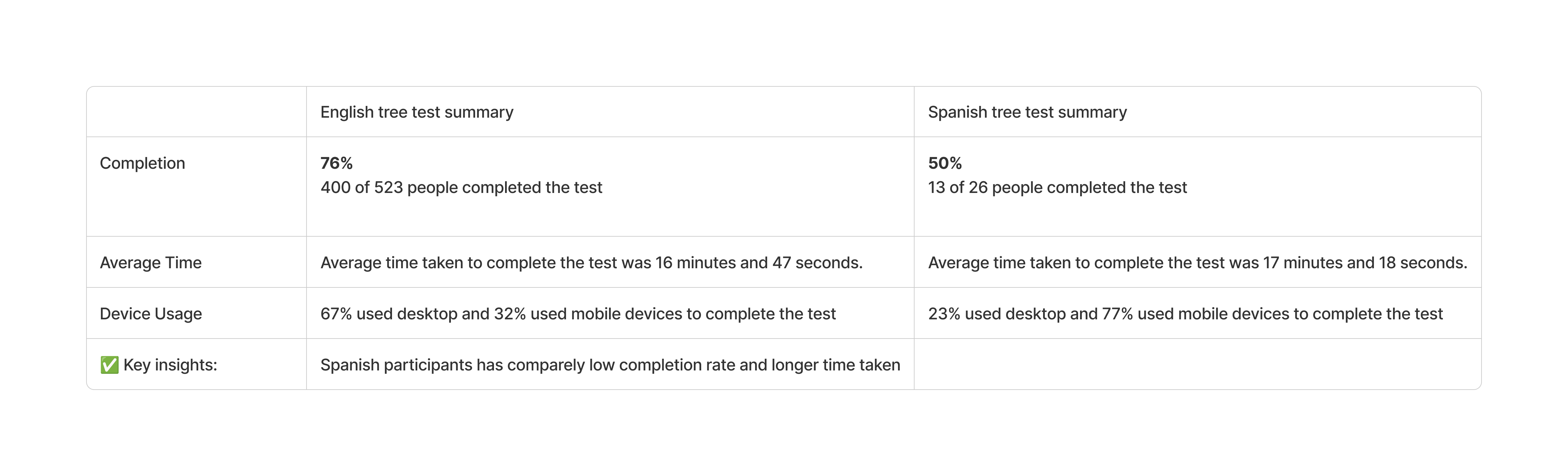 - Tree Test Analysis – validated user navigation expectations and identified areas of confusion.